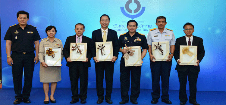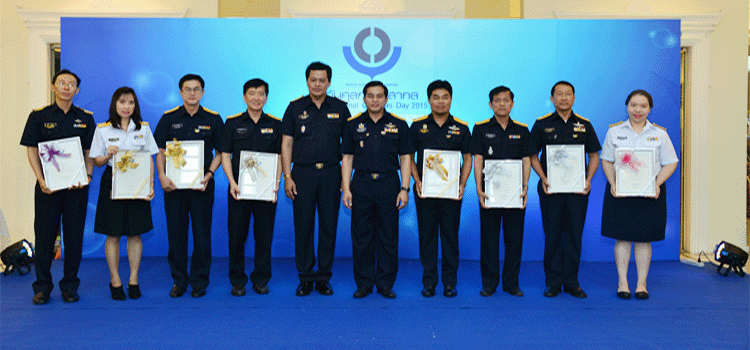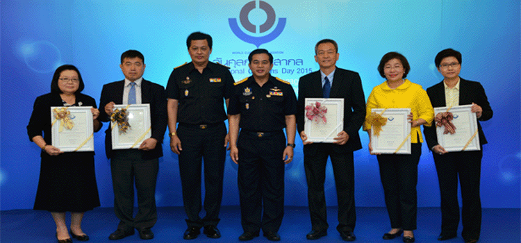 Dr.Somchai Sujjapongse, Director-General of Customs gives the WCO award certificate to customs officials, government agencies and the private sector