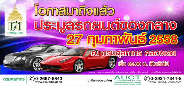 Seized Cars Auction will be held at the parking zone in front of Seized Goods Division Building, The Customs Department on 27 February 2015 at 10 a.m.