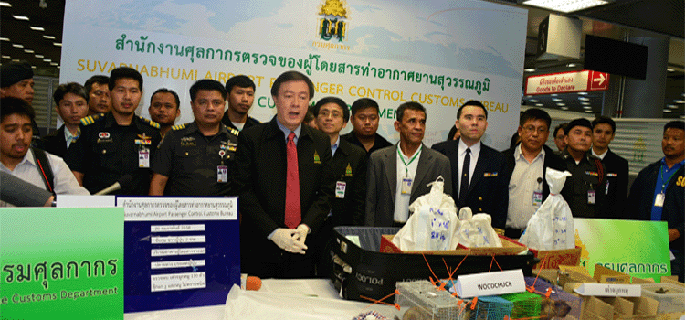 Mr.Auychai Kultipmontre, Director of Suvarnabhumi Airport Passenger Control Customs Bureau and Mr.Khanit Isdul, Director of Customs Control Development